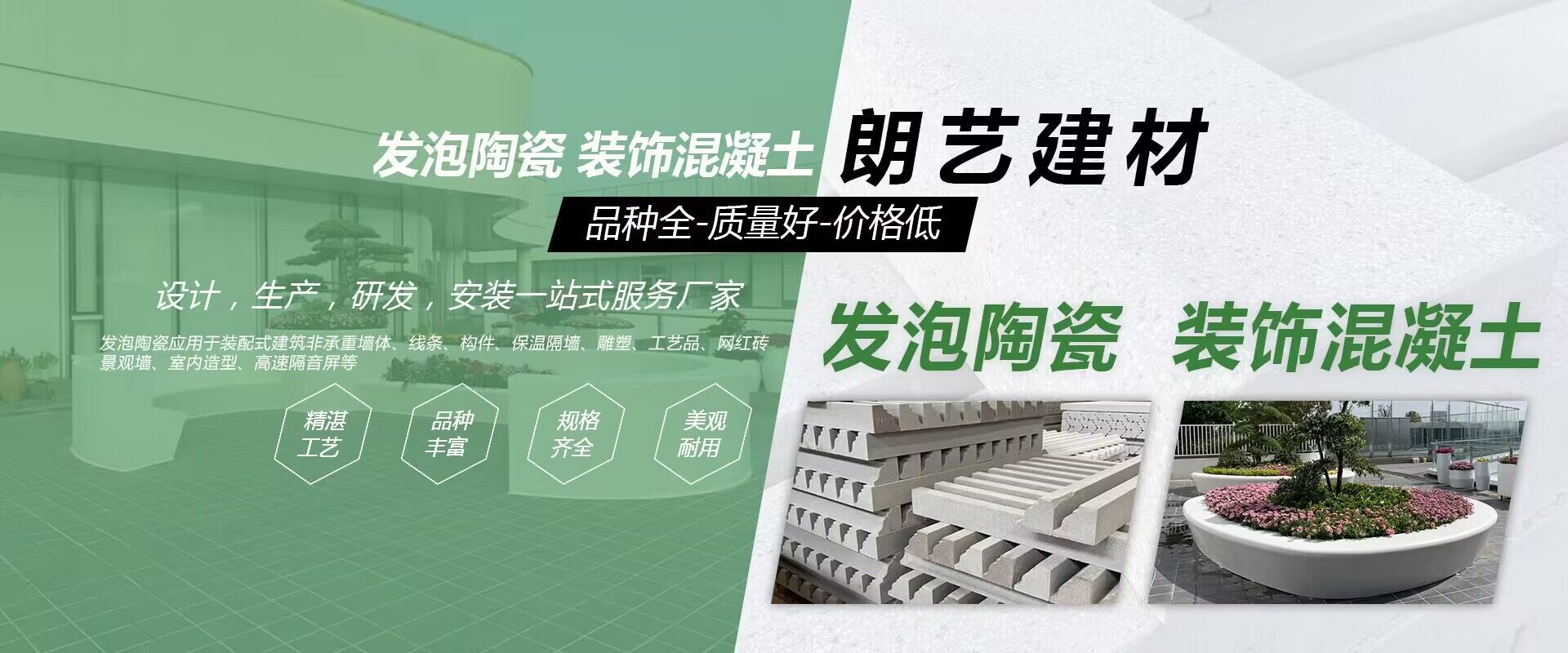裝飾混凝土、發(fā)泡陶瓷實(shí)力廠家 成立于2006年,專(zhuān)業(yè)從事EPS、GRC、GRG、發(fā)泡陶瓷、裝飾混凝土等新型裝飾造型材料的設(shè)計(jì)、研發(fā)、生產(chǎn)和服務(wù)的綜合性企業(yè)